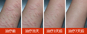 治疗:医生依据患者症状结合生物波电子针灸术检测具体的病因,再利用德国卡特臭氧技术清除致敏因自由基,当天瘙痒症状消失,风团减少,配合口服中药和中药古方熏蒸改善过敏体质,提高皮肤对过敏源的耐受性。通过后期免疫修复巩固,5天后,黄先生康复。2个月后回访,无复发。